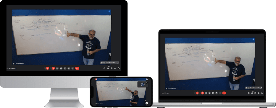 Nosso curso oferece um modelo híbrido de ensino, que combina aulas presenciais com a comodidade da transmissão ao vivo para quem não puder comparecer fisicamente. Assista às aulas de onde estiver, e ainda tenha a possibilidade de interagir e tirar suas dúvidas com os professores em tempo real, utilizando o microfone. Dessa forma, você tem flexibilidade para estudar de acordo com sua rotina, sem abrir mão do suporte e da interação oferecidos em aulas presenciais.